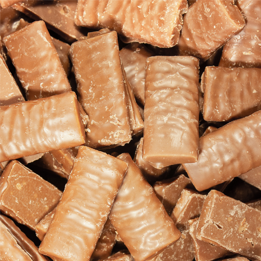 Ainesosat: sokeri, margariini (kasviöljy, rypsiöljy), kasvirasva (kovetettu rypsiöljy), vesi, suola, emulgointiaine (E471), kasvirasva (E322 auringonkukkalesitiini), aromi, happamuudensäätöaine (E330), väri (E160a), A- ja D vitamiini, glukoosisiirappi, voi, kaakaovoi, täysmaitojauhe, kaakaomassa, rasvaton maito, emulgointiaine (soijalesitiini, E476), suola, aromi (vaniliini). Saattaa sisältää pähkinöiden jäämiä.