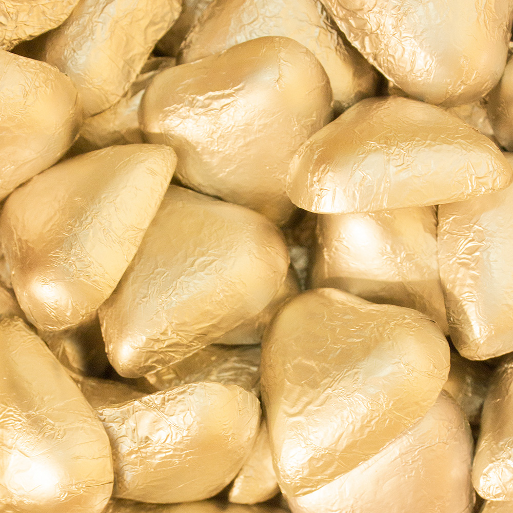 Lumoava kultakuorinen suklaasydän. Sopii täydellisesti hääkarkiksi tai romanttiseksi lahjaksi.