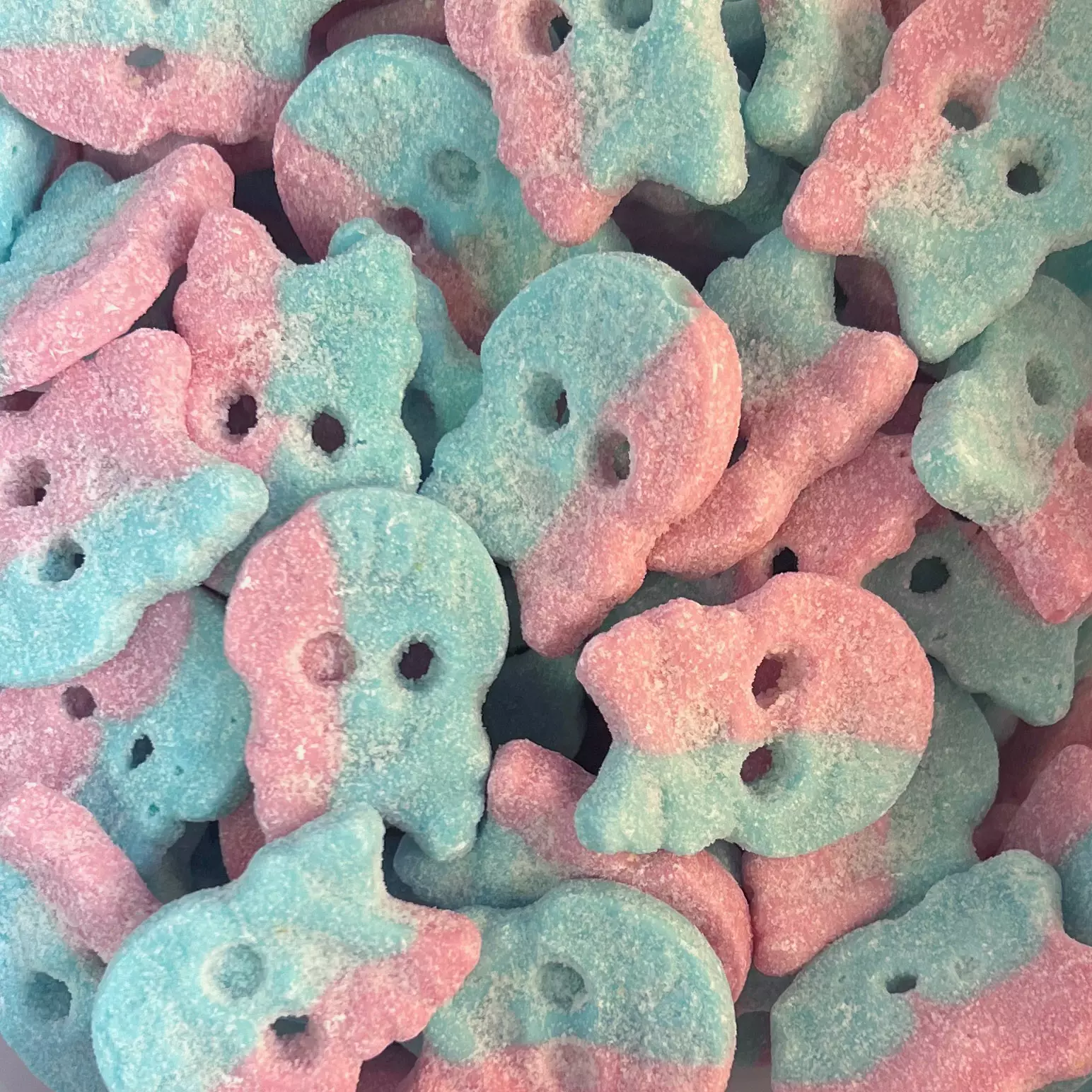 Ruotsalainen irtokarkkien ehdoton ykkönen, Bubsin Dizzy Skalle -pääkallokarkki vie herkuttelun uudelle tasolle. Purukumimainen maku, kirpeällä twistillä on uskomattoman herkullinen. Vaaleanpunaiset ja siniset sävyt luovat todellisen pastellisen väriyhdistelmän, joka kutsuu maistamaan.