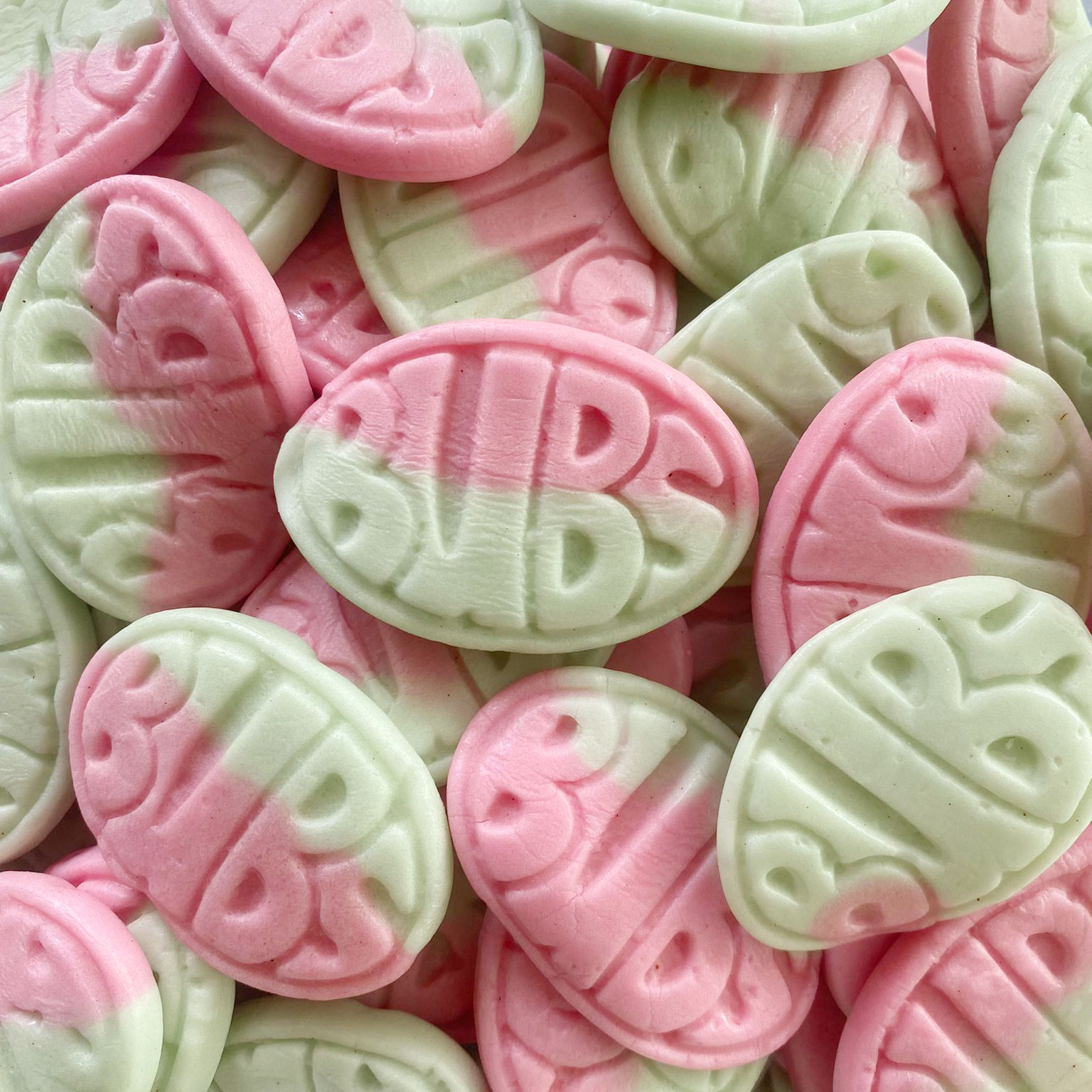 Bubsin aivan ihastuttavat ovaalit, vesimelonin makuisina ovat pehmoisia ja juuri sopivan sitkaita irtokarkkeja.