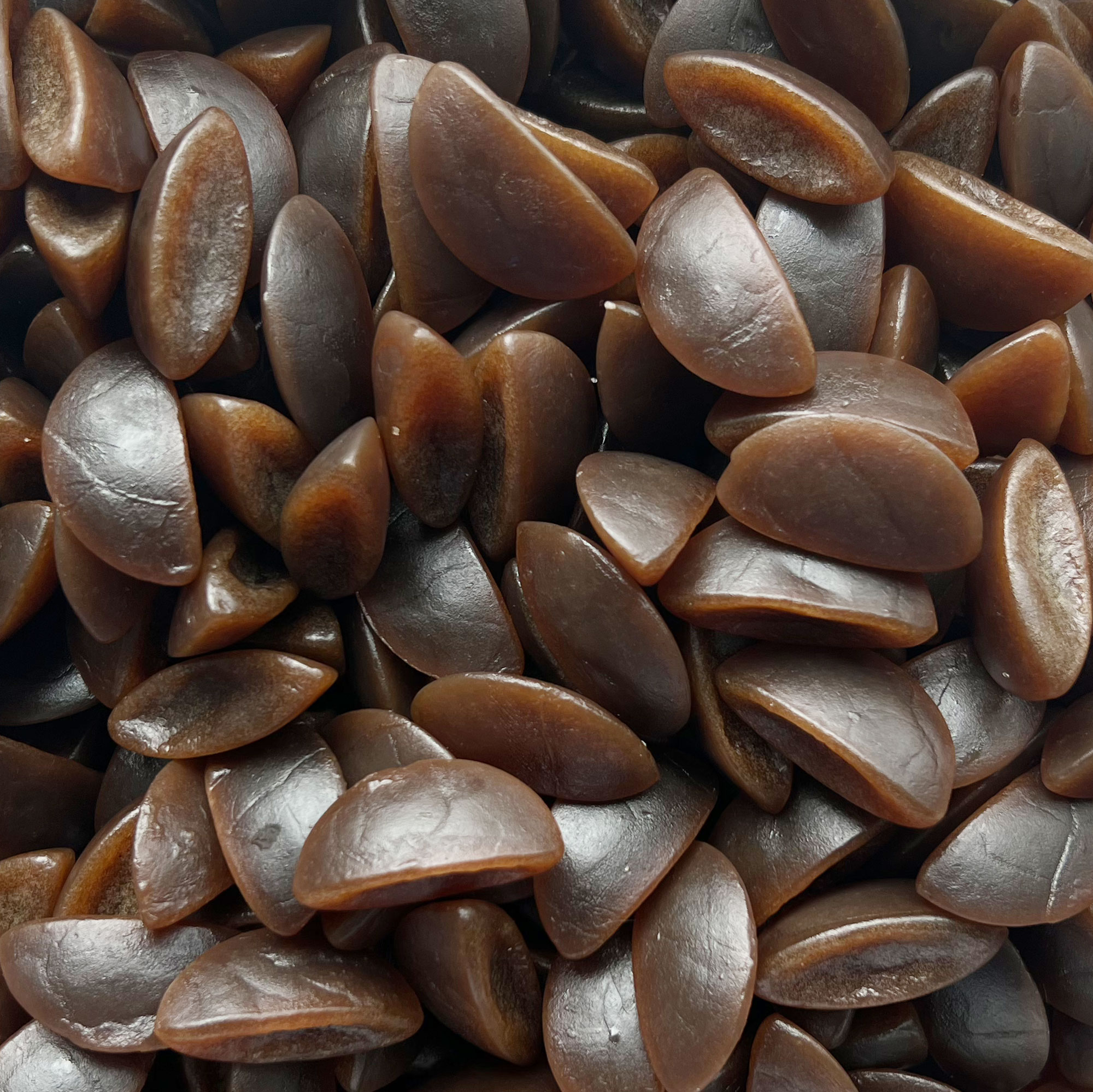 Sokeri, glukoosisiirappi, vesi, liivate, happamuudensäätöaine (sitruunahappo), aromiaineet, väriaine (E150d), kasviöljy (kookosöljy), pintakäsittelyaine (mehiläisvaha).
