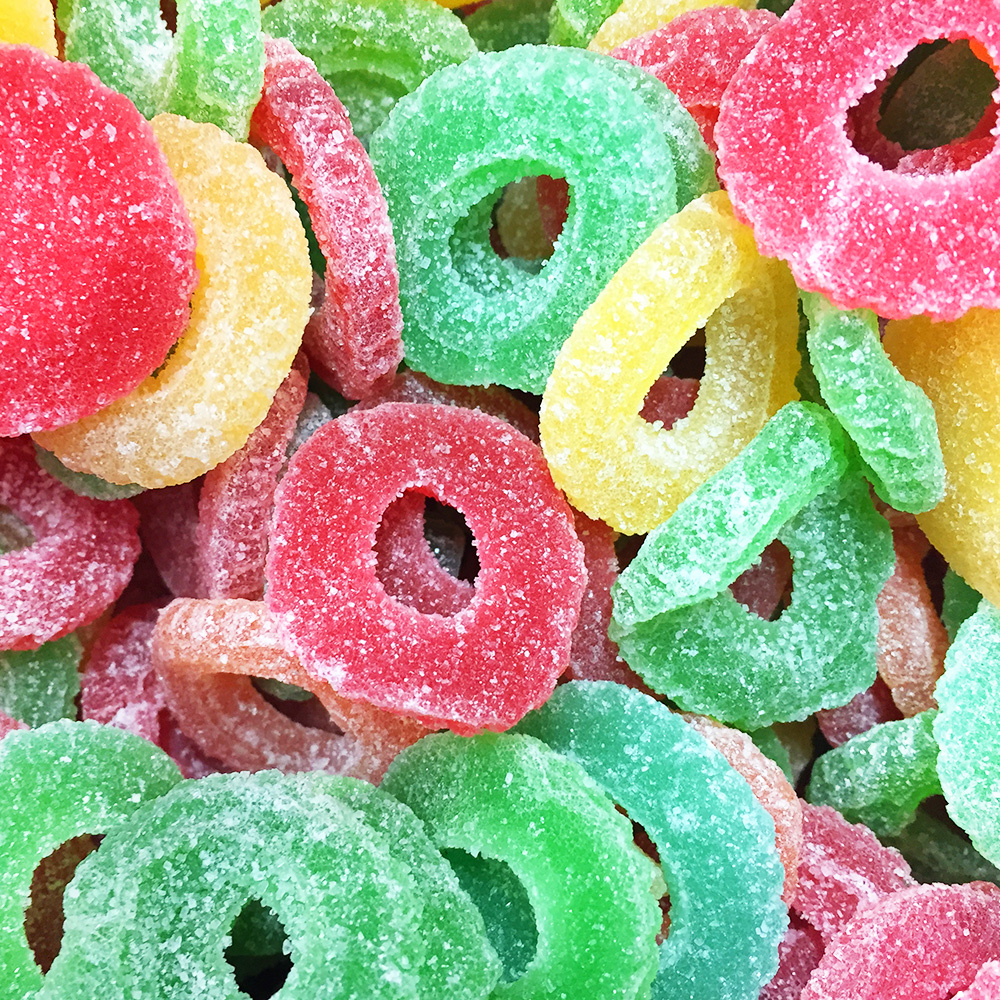 Dragster hedelmärenkaat ovat suloisen makoisia sokeripäällsyteisiä hedelmämakeisia.