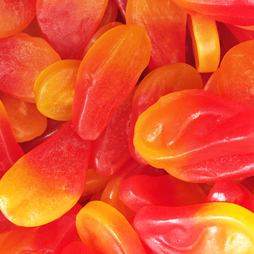 Ainesosat: Sokeri, fruktoosiglukoosisiirappi, liivate, aromit, värit ( E100, E120), pintakäsittelyaineet, kasviöljy, karnaubavaha, E903).
