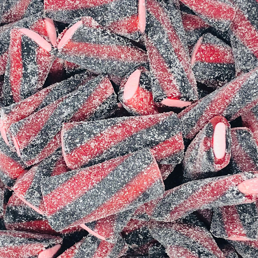 Kirpeä vadelman ja lakritsin makuinen täytetty kaapeli.