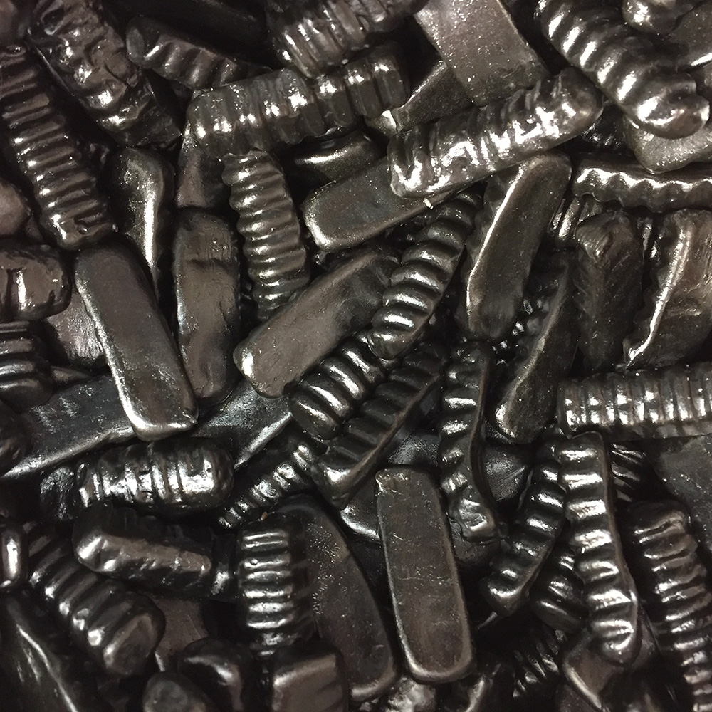 Glukoosi-fruktoosisiirappi, sokeri, liivate, vesi, lakritsiuute, salmiakki (ammoniumkloridi), väri (E153), aromi, pintakäsittelyaine (E901).