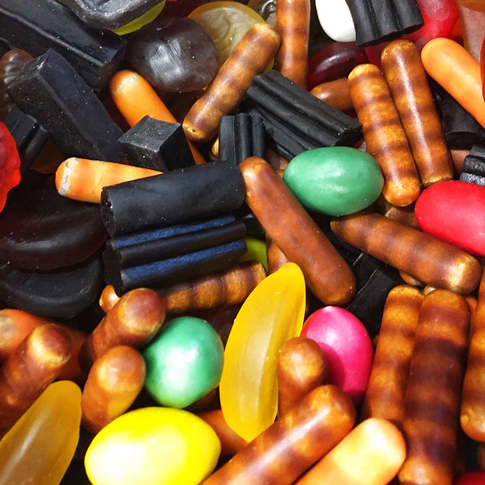 Ainesosat: Glukoosisiirappi, sokeri, ruskea sokerisiirappi, vehnäjauho, liivate, maissitärkkelys, rypälesokeri, raakalakritsi (3 % lakritsin osuudesta), happo: sitruunahappo, hedelmä- ja kasvistiivisteet: saflori, spiruliinalevä, omena, porkkana, mustikka, seljanmarja, mustaviinimarja, appelsiini, kiivi, sitruuna, aronia, mango, passionhedelmä, retikka, bataatti, hibiskus, viinirypäle, inverttisokerisiirappi, seljanmarjauute, ammoniumkloridi, aromi, paahdettu sokeri, ruokasuola, värit: kurkumiini, karmiinit, klorofylliinikuparikompleksit, kasviperäinen lääkehiili, titaanidioksidi, paakkuuntumisenestoaine: talkki, palmuöljy, pintakäsittelyaineet: mehiläisvaha valkoinen ja keltainen, karnaubavaha, säilöntäaine: sorbiinihappo.