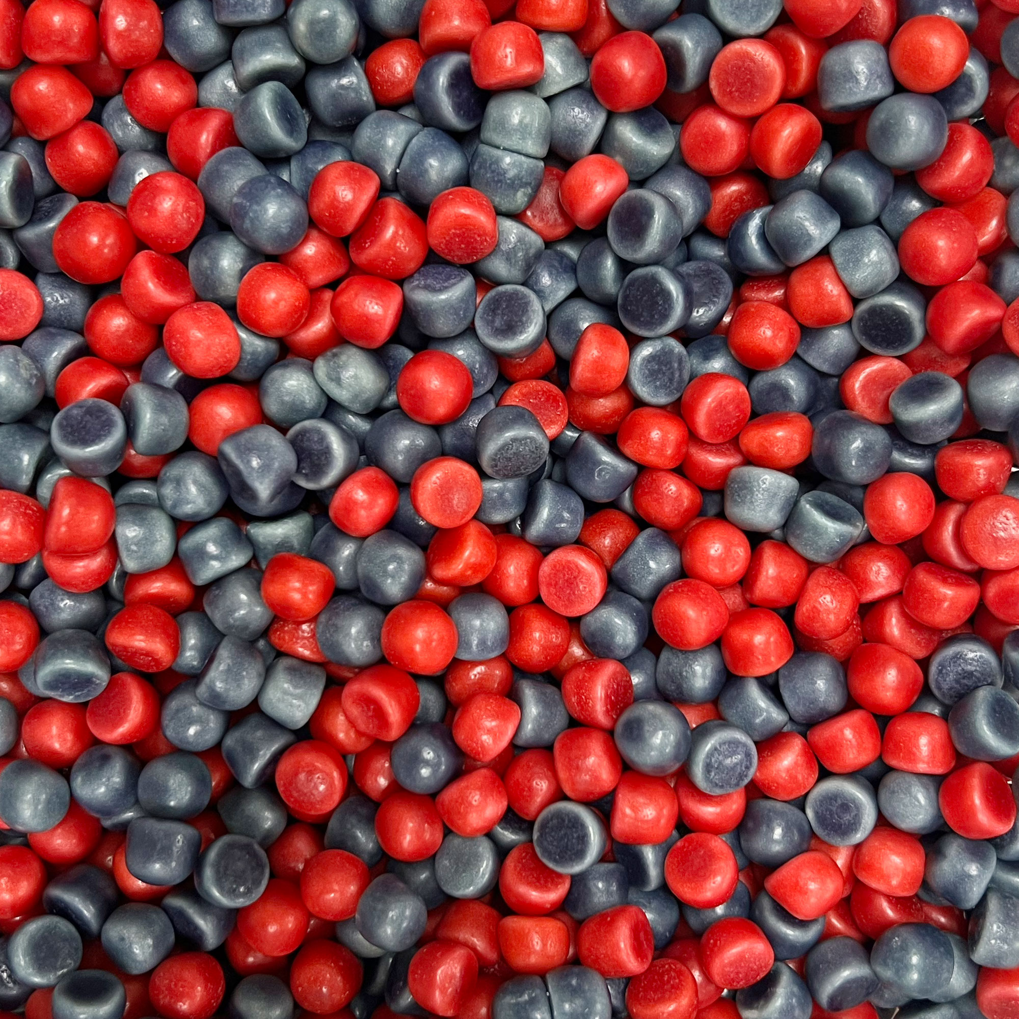 Ainesosat: Sokeri, glukoosisiirappi, pintakäsittelyaine, liivate, inverttisokeri, happamuudensäätöaineet (E330, E331), maitoproteiini, satabilointiaine (E420), aromit, värit ( E163, E133, E120, E160e), emulgointiaine (E471), kasviöljy, pintakäsittelyaine (E901).