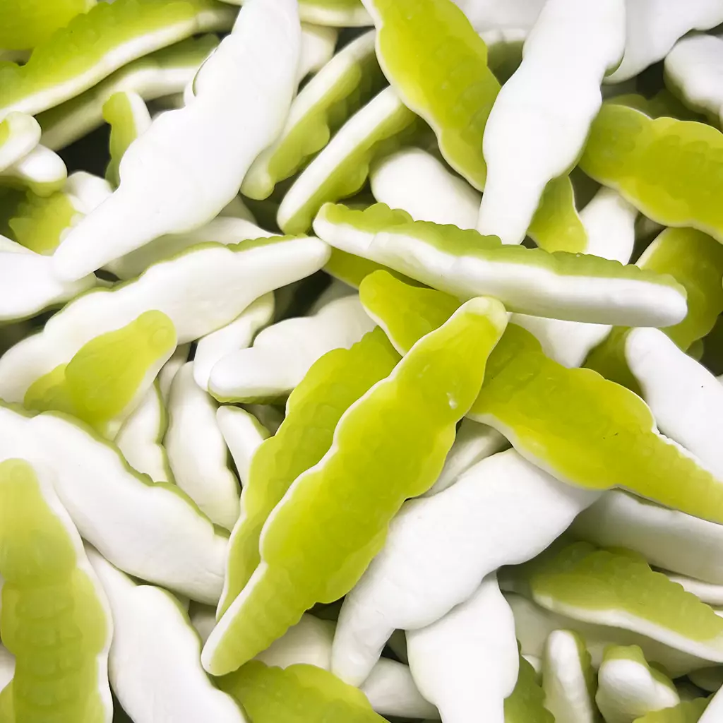 Raikkaan omenainen hedelmäirtokarkki, jossa vaalea vaahtomakeinen kohtaa vihreän omenan maun. Pehmeä rakenne ja hauska krokotiilin ulkomuoto tekevät tästä herkusta vastustamattoman valinnan vihreän karkin ystäville.