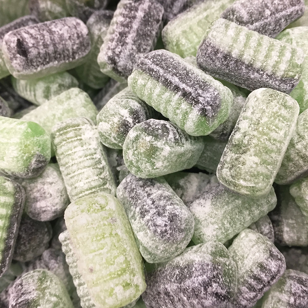 Sokeri, glukoosisiirappi, salmiakki, happamuudensäätöaine (omenahappo), aromit, lakritsijauhe, värit (E153, E100, E131).