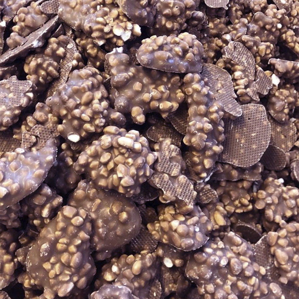 Riisisuklaassa on nimensä mukaisesti rapeita paahdettuja riisipuffeja suklaakuorrutteella.