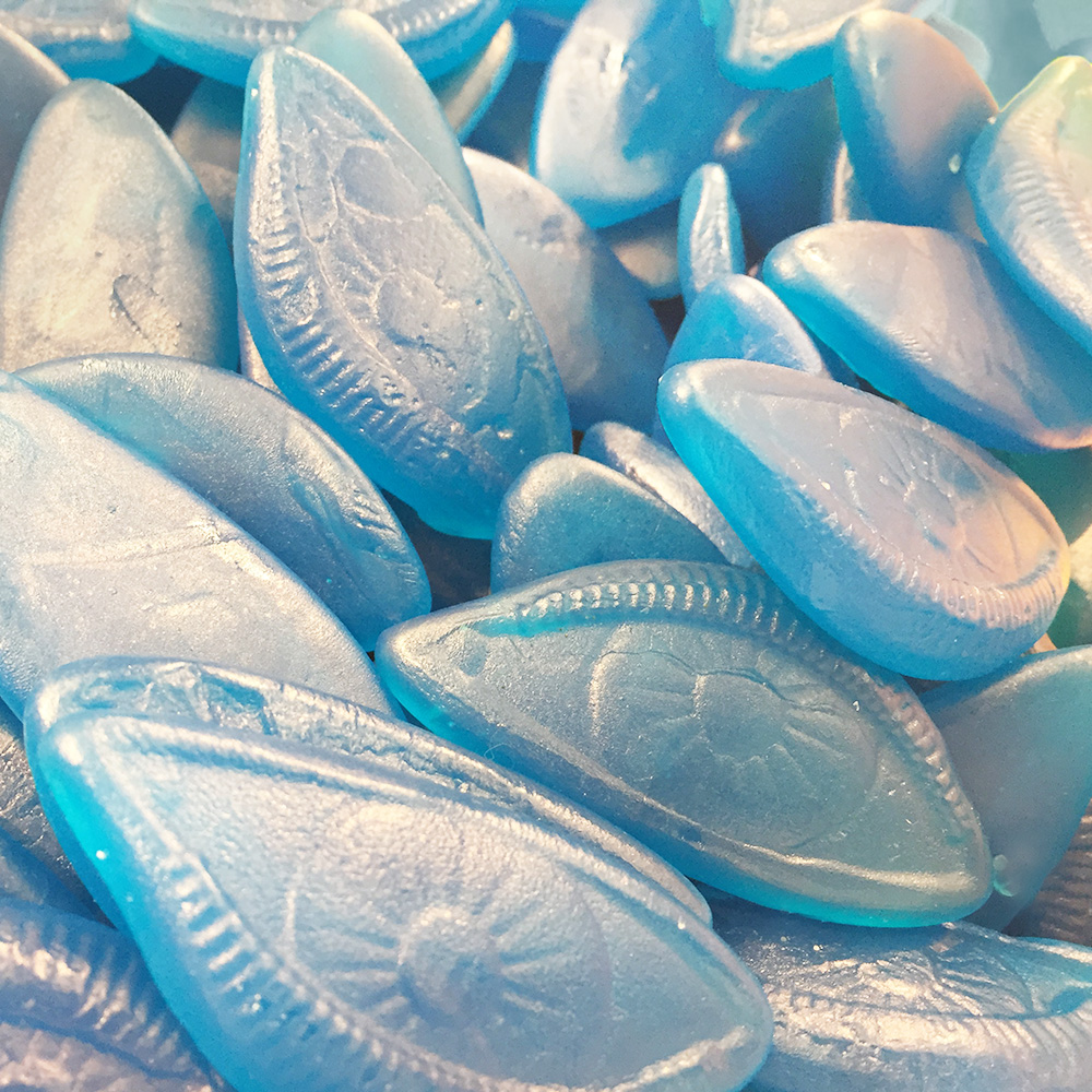 Ainesosat: Glukoosisiirappi, sokeri, veso, liivate, maissitärkkelys, hapot (E330, E270, E296), hyytelöimisaine (pektiini), aromit, safloriuute, värit (E100. E120, E133, E150d, E163), pintakäsittelyaineet (kasviöljy, karnaubavaha).