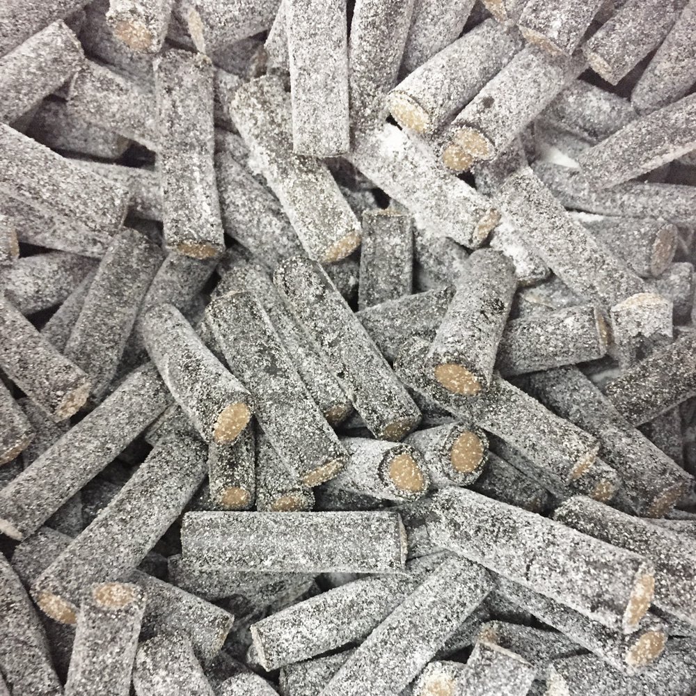 Ainesosat: sokeri, melassisiirappi, vehnäjauho, tärkkelyssiirappi, raakalakritsa, ammoniumkloridi 3%, kovetettu kasvirasva, muunnettu maissitärkkelys, liivate, emulgointiaine (glyseryylimonostearaatti), kosteudensäilyttäjä (glyseroli), suola, aromi, sisältää vehnägluteiinia.