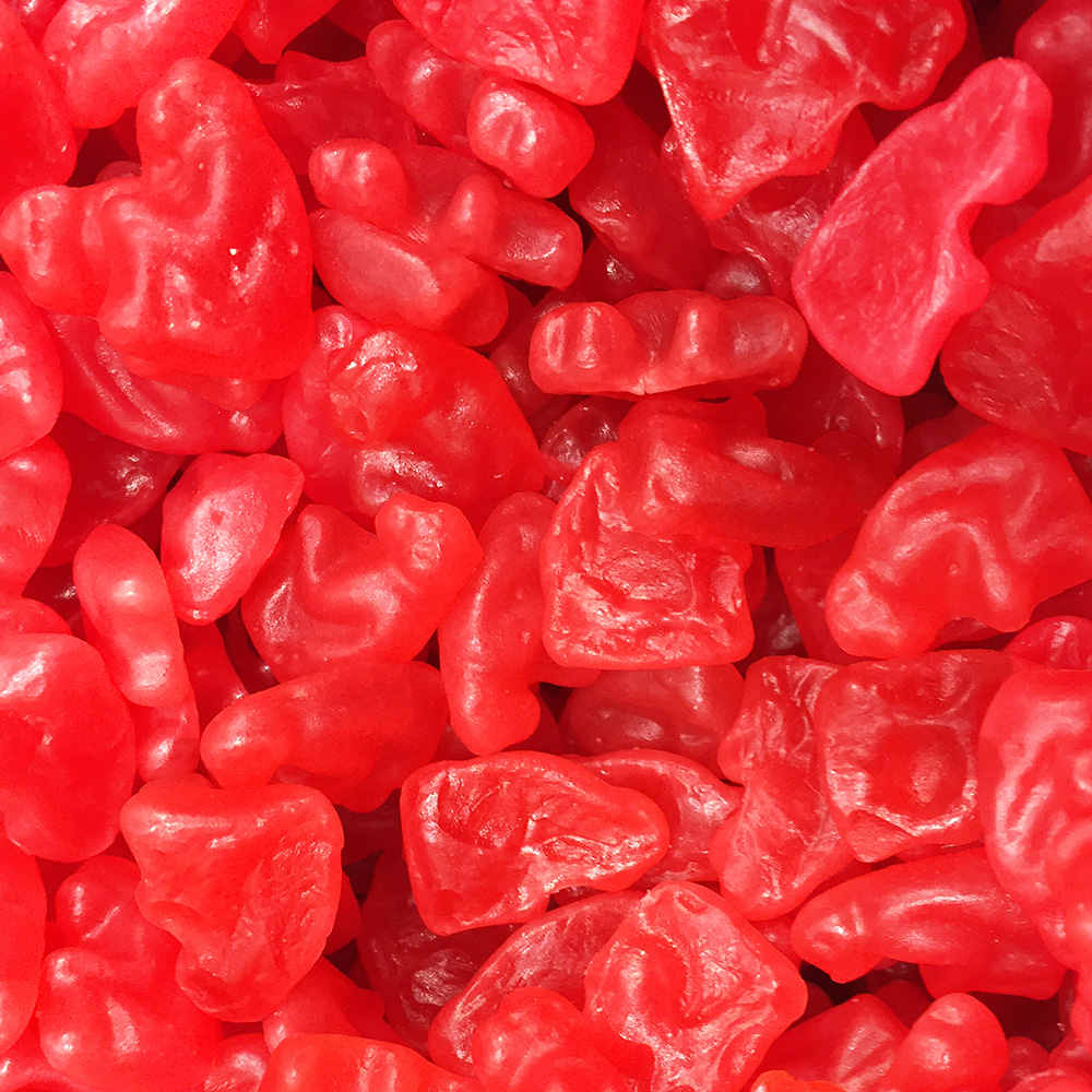 Ainesosat: Sokeria, glukoosisiirappia, liivatetta, vettä, tärkkelystä, happoa (E270), happamuudensäätöainetta (E325), kasviöljyjä (kookos, palmu), stabilointiainetta (E471), aromia, pintakäsittelyainetta (karnaubavahaa), värejä (E120, E160a).