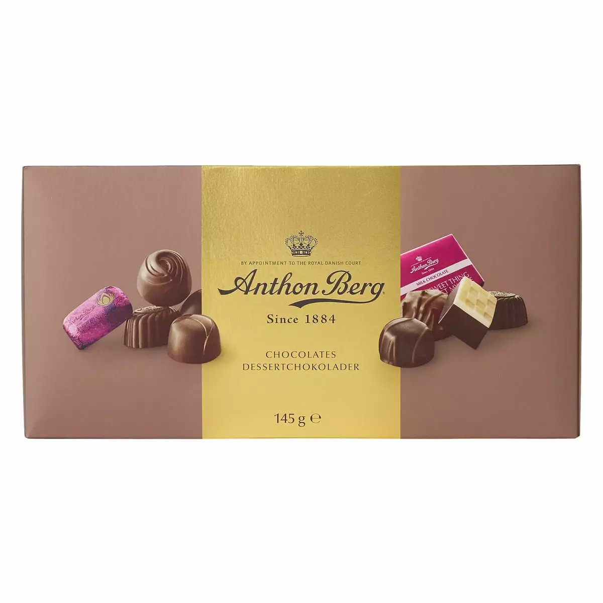 Tanskalainen Anthon Berg valmistaa uskomattoman hyviä suklaakonvehteja. Tähän 145 g konvehtirasiaan on valittu heidän 12 suosikkikonvehtia. Anthon Bergin suklaita on valmistettu jo vuodesta 1884 saakka.