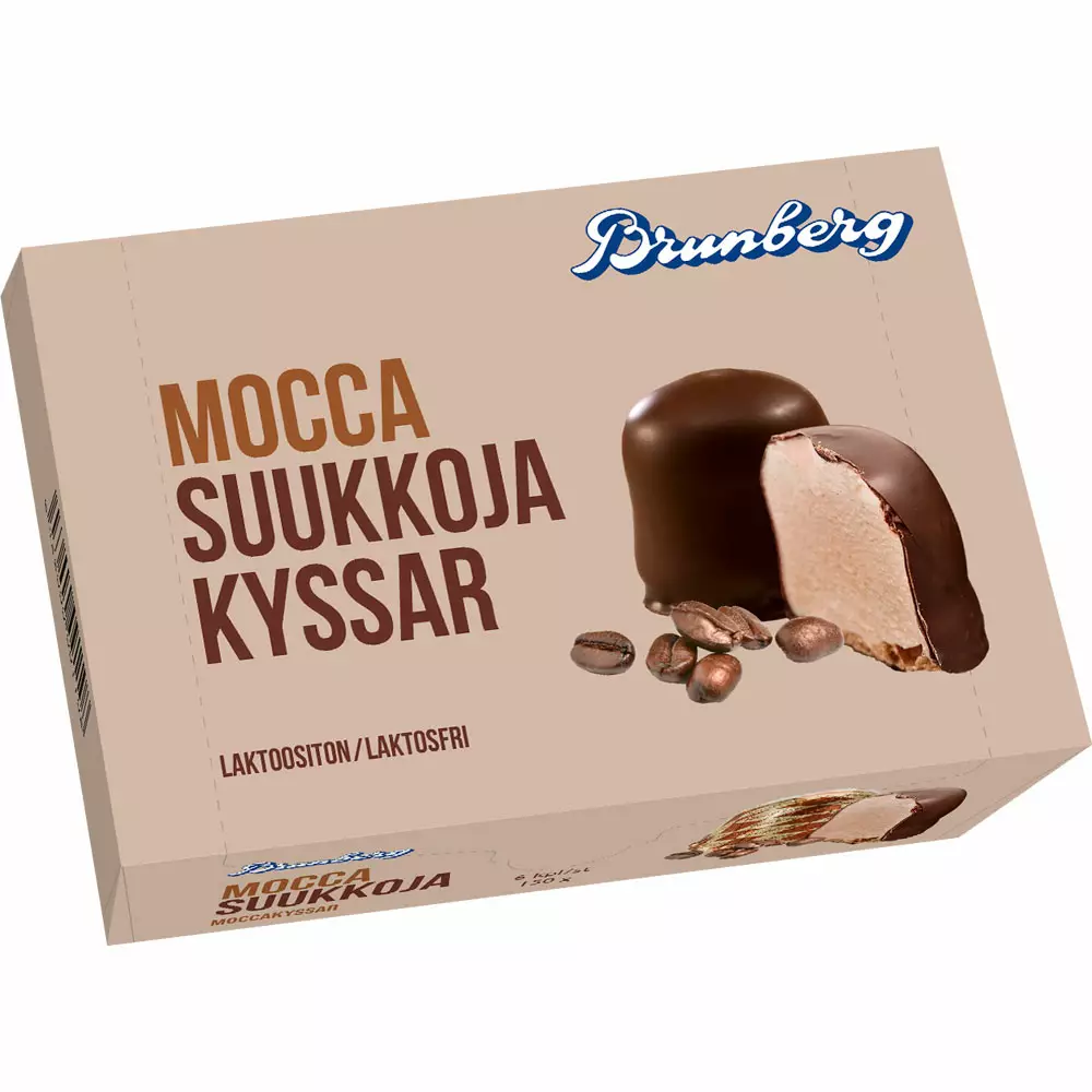 Lumoava kahvinmakuinen mokkavaahtosuukko. Tummalla suklaalla kuorrutettu kuohkea mokka-vaahtopusu rapean vohvelilastun päällä, kruunaa herkutteluhetket kerta toisensa jälkeen. Kauniiseen hopeakääreeseen kiedotut Brunbergin suukot ovat valloittaneet meidän suomalaisten herkkusuita jo vuodesta 1951. Suukot kuuluvat kahvipöytiin, lastenkutsuille, ystävänpäivään ja ovat pettämätön tuliainen kyläilyyn.
