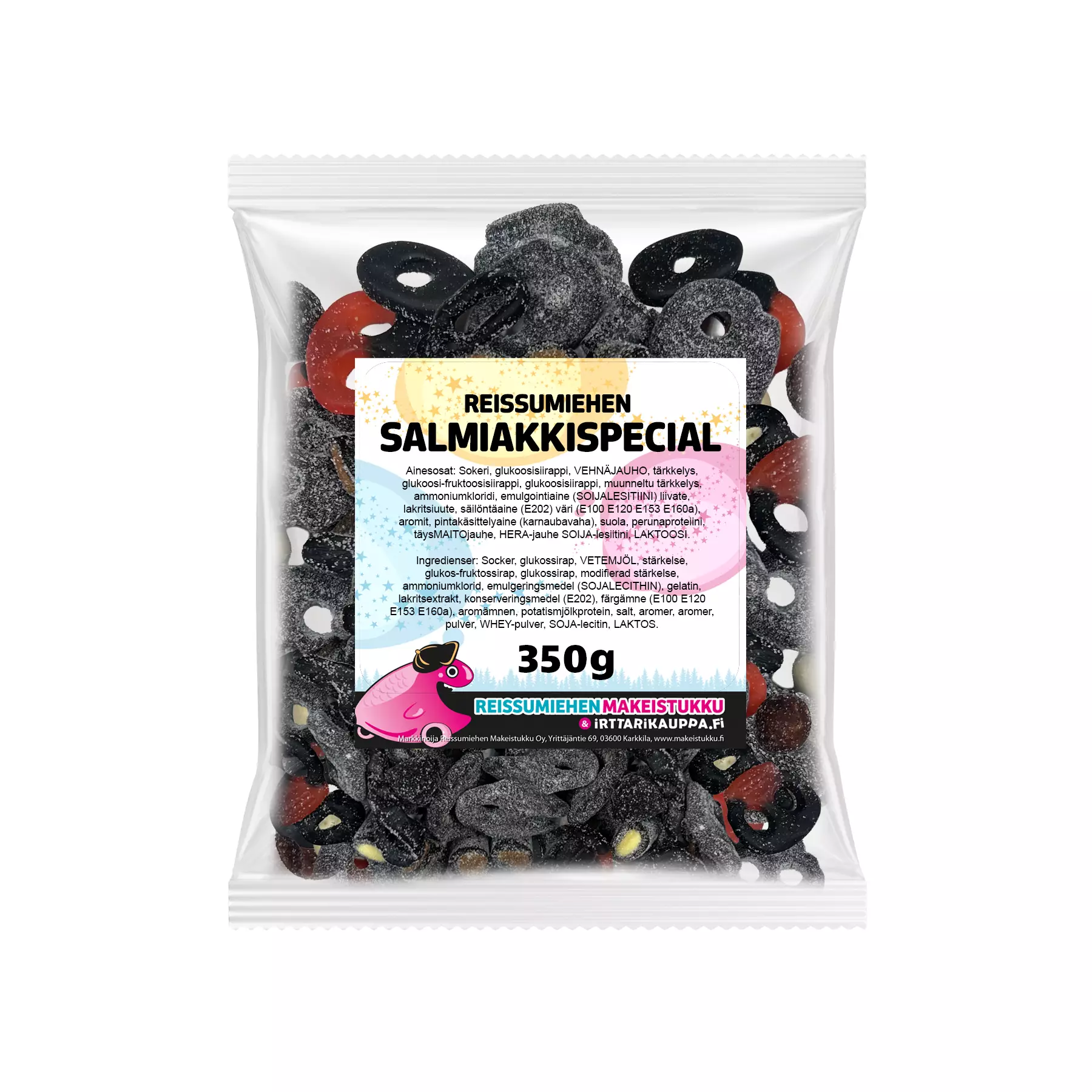 Ainesosat: Sokeri, glukoosisiirappi, VEHNÄJAUHO, tärkkelys, glukoosi-fruktoosisiirappi, glukoosisiirappi, muunneltu tärkkelys, ammoniumkloridi, emulgointiaine (SOIJALESITIINI) liivate, lakritsiuute, säilöntäaine (E202) väri (E100 E120 E153 E160a), aromit, pintakäsittelyaine (karnaubavaha), suola, perunaproteiini, täysMAITOjauhe, HERA-jauhe SOIJA-lesiitini, LAKTOOSI. Saattaa sisältää jäämiä: PÄHKINOISTÄ.
