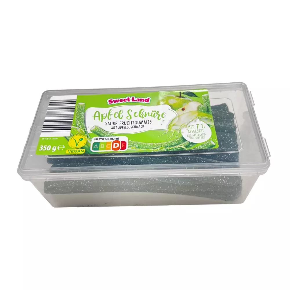 Sokeri, glukoosi-fruktoosisiirappi, maissitärkkelys, VEHNÄjauho (sisältää gluteenia), omenamehu tiivisteestä (7%), happamuudensäätöaineet (omenahappo, sitruunahappo), kosteudensäilyttäjä (glyseroli), palmuöljy, inverttisokerisiirappi, perunaproteiini, aromit, pinnoiteaine (karnaubavaha), väriaineet (kuparikompleksit klorofylliineistä ja klorofyllistä).