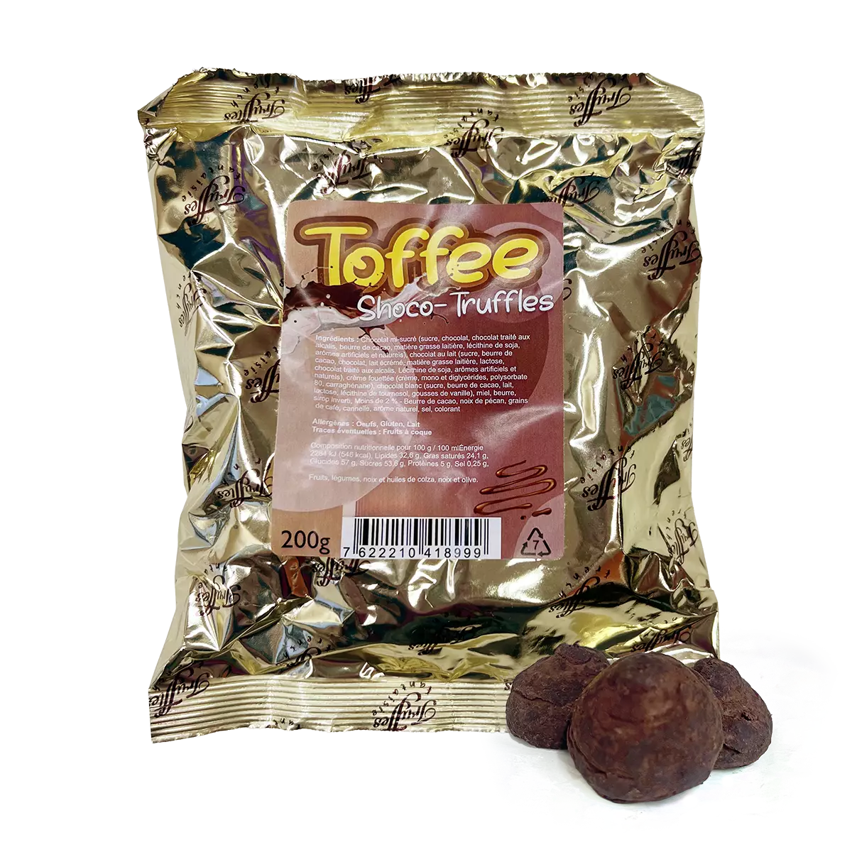 Ylellinen tryffelikarkki, jossa suklaan ja toffeen makeus sulautuvat pehmeästi yhteen!