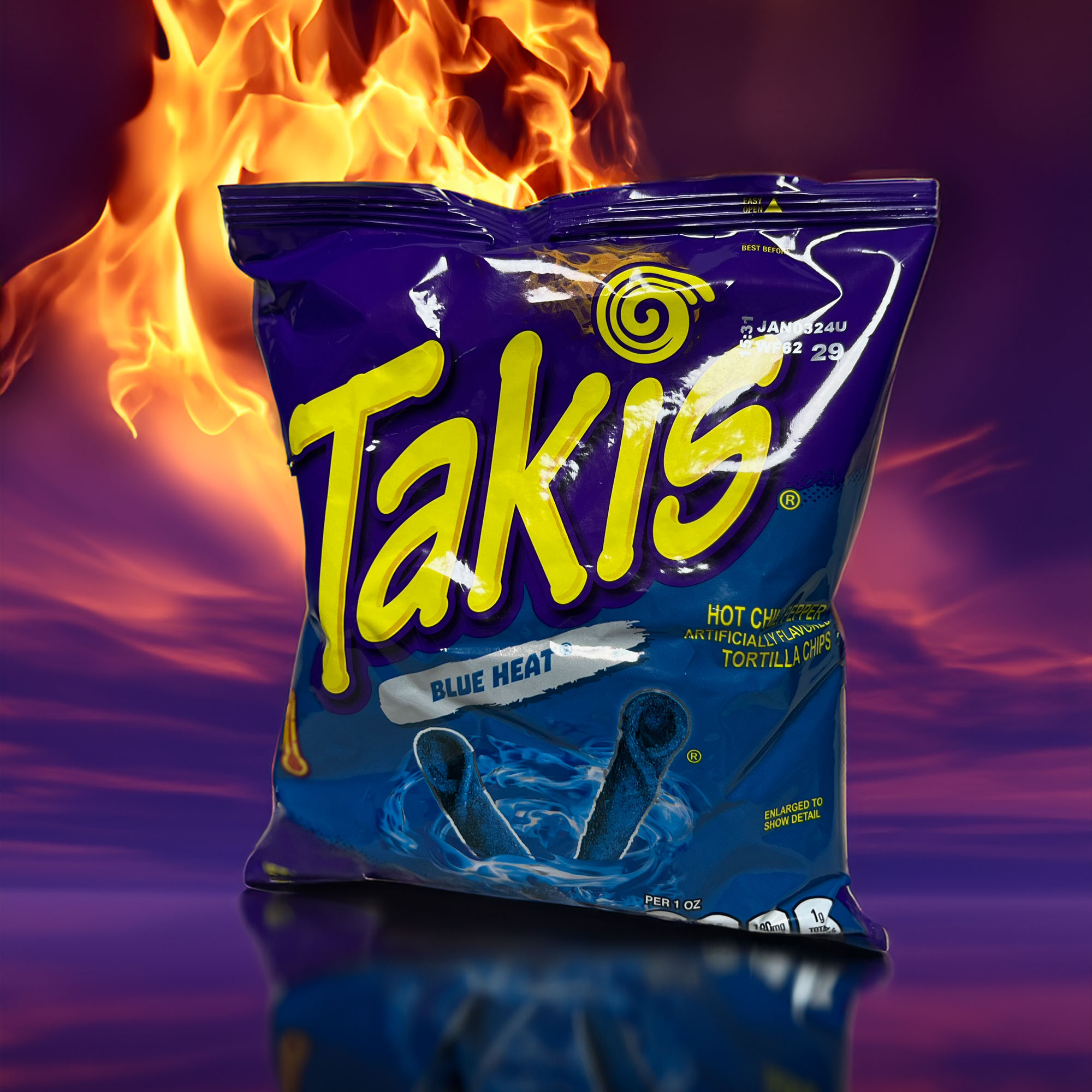Ihan järjettömän tulinen Takis, sininen tortillasipsi - uskallatko ottaa haasteen vastaan? Takikset ovat valloittaneet tulisten sipsien ystävien maailman. Kaikki haluavat testata Takiksia, jotkut syövät yhden ja jättää siihen, kun taas toiset huitaisevat koko pussin huiviinsa muina miehinä.